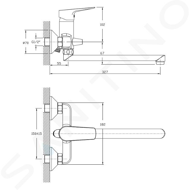 Bateria ścienna umywalkowa/wannowa z obrotową wylewką