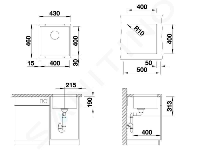 Blanco Subline 400 jest wykonana z wysokiej jakości materiału SILGRANIT® PuraDur®. Wyróżnia się trwałością, stabilnością i wytrzymałością. Całkowite wymiary zlewozmywaka to 430 x 460 mm, a wymiary samego zlewozmywaka to 400 x 400 mm. Zlewozmywak ma 190 mm głębokości. Zainstaluj ją pod blatem roboczym i dobierz szafkę dolną o minimalnej szerokości 500 mm.