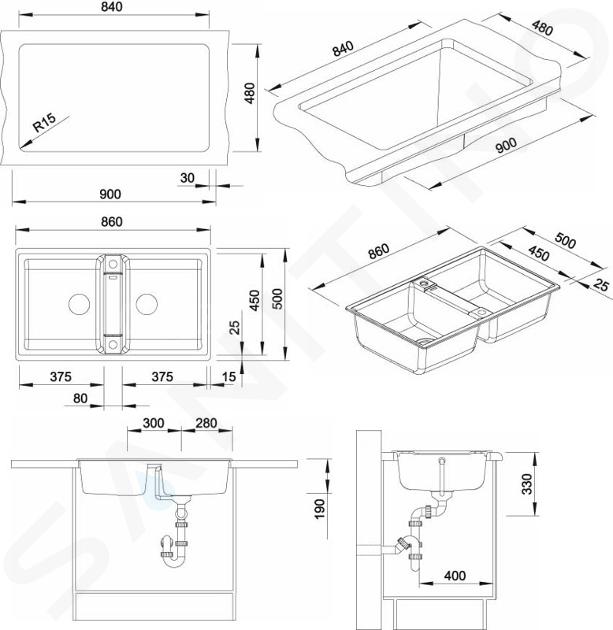 Ten zlewozmywak jest wykonany z materiału SILGRANIT® PuraDur®. Wyróżnia się twardością, wysoką trwałością i trwałością koloru. Pokochasz także antracytowy kolor, który nadaje kuchni luksusowy wygląd. Ten zlewozmywak jest przeznaczony do montażu od góry. Jego całkowity rozmiar wynosi 860 x 500 mm. Z tego powodu ważne jest, aby szafka dolna miała co najmniej 900 mm szerokości. Wymiary zlewozmywaka wynoszą 2 x 375 x 450 mm, a głębokość 190 i 190 mm.