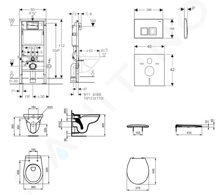 Zestaw ścienny z deską sedesową Ideal Standard, przyciski Delta50, biel alpejska