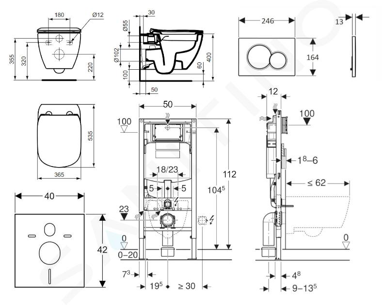 Zestaw do montażu ściennego, toaleta i deska sedesowa Ideal Standard Tesi, przyciski Sigma01, chrom błyszczący