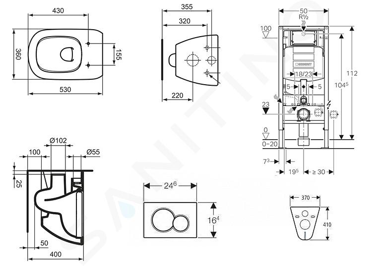 Zestaw toaleta wisząca i deska sedesowa Ideal Standard Tesi, przyciski Sigma30, biały/chrom