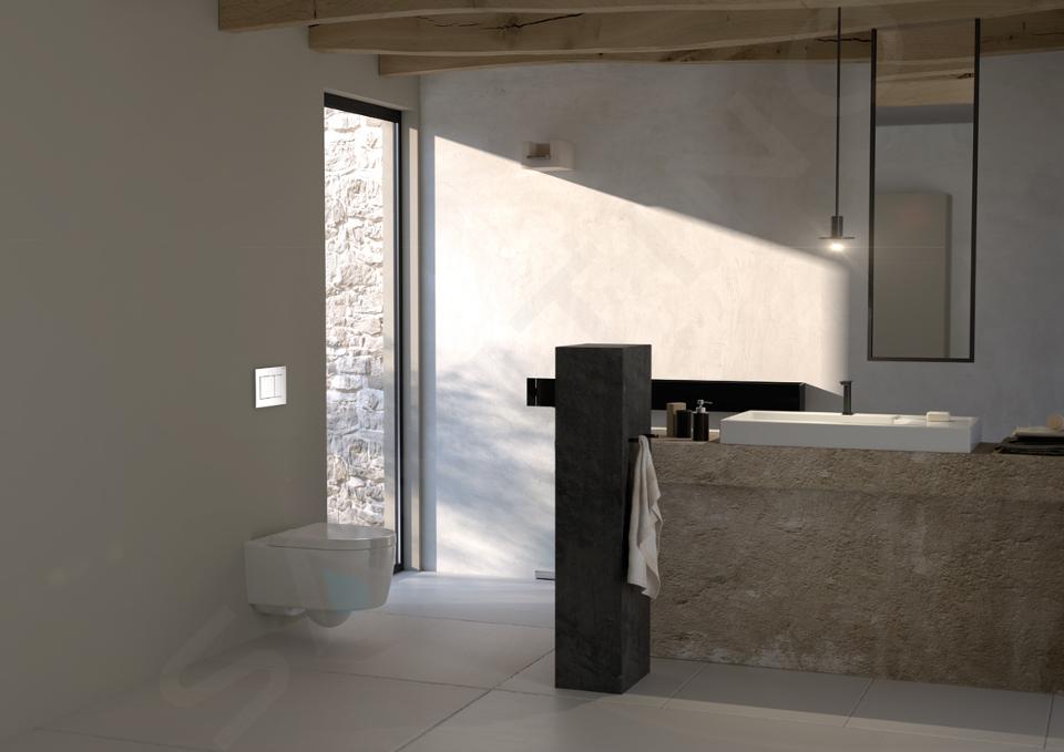 Przycisk ma podwójne działanie, co oznacza, że użytkownik może wybrać jeden z dwóch trybów spłukiwania. Niezależnie od tego, który z nich wybierzesz, do jego aktywacji wystarczy lekkie dotknięcie jednego z prostokątnych przycisków. Sigma20 zapewnia nie tylko wizualny, ale także akustyczny komfort w toalecie. Dzięki izolacji akustycznej przycisku spłukiwanie jest ciche.