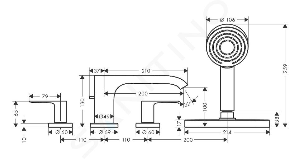 4-otworowa bateria wannowa Vivenis, bez korpusu