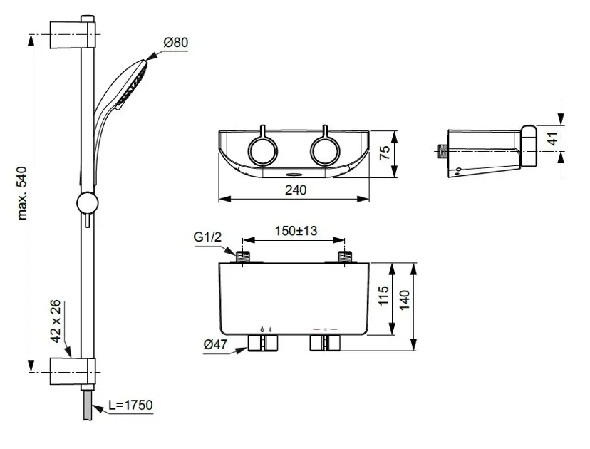 Termostatyczna bateria natryskowa CeraPlus Safe OX