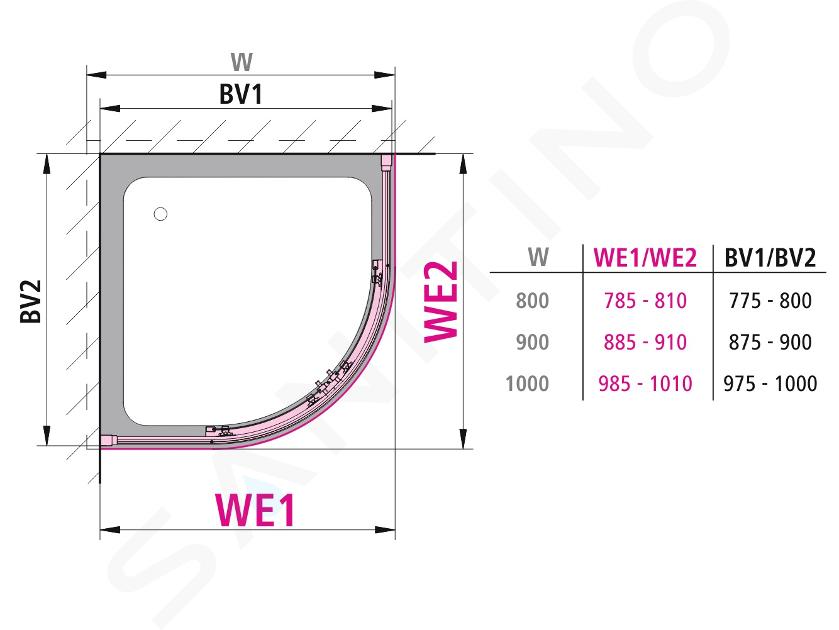 Ćwierćokrągła kabina prysznicowa, typ R55