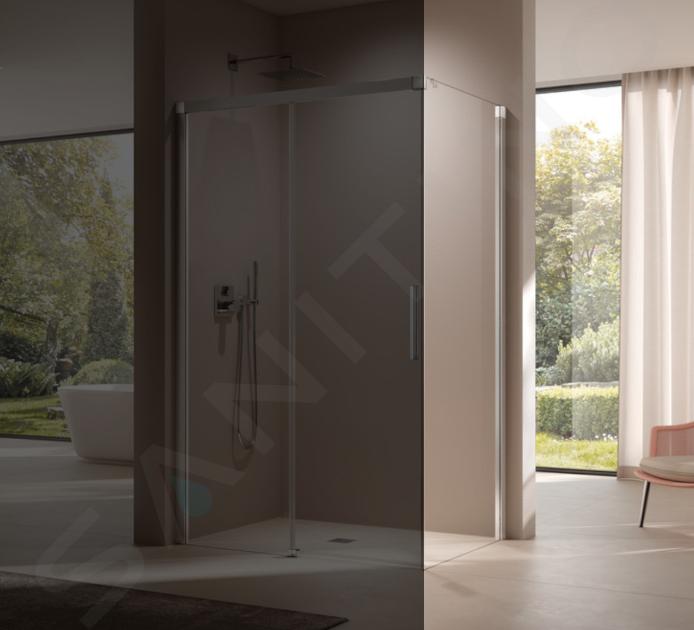 Aby stworzyć kompletną kabinę prysznicową, należy kupić stałą ścianę boczną NI TWR i lewe drzwi przesuwne NI D2L do montażu na podłodze.