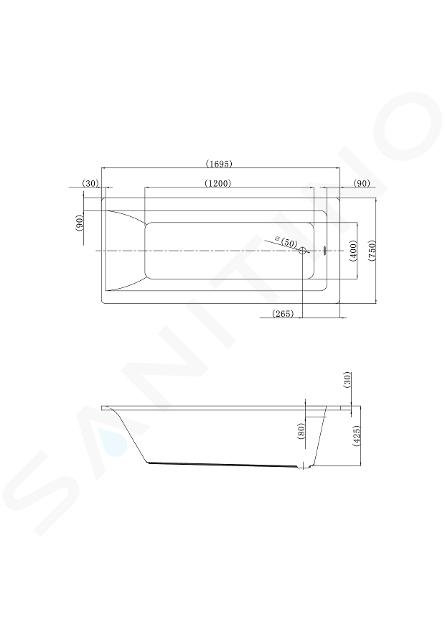 Wanna prostokątna rozmiary: 1695 x 750 mm materiał: akryl sanitarny... Zobacz pełny opis