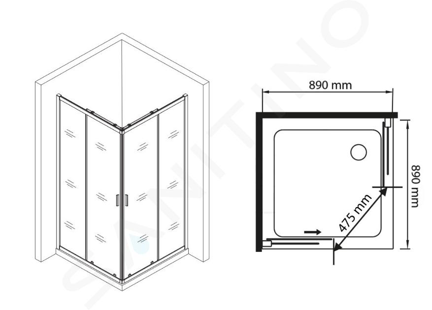 Kwadratowa kabina prysznicowa IN Vati wymiary: 890 x 890 x 1900 mm... Zobacz pełny opis