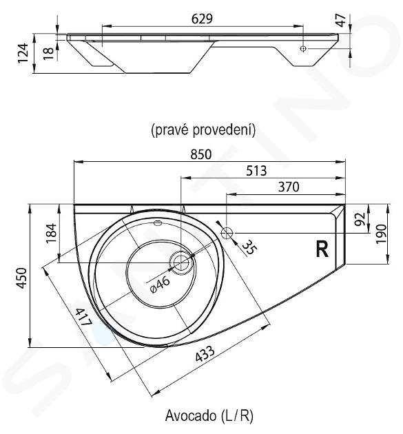 Nazwa nie kłamie, umywalka Ravak Avocado ma kształt pokrojonego awokado. Mierzy około 450 mm szerokości i maksymalnie 850 mm długości. Oprócz obszaru mycia rąk, obejmuje on również obszar przechowywania z otworem na baterię umywalkową.